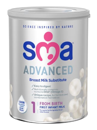 Breast milk is best for babies and breastfeeding should continue for as long as possible. Infant milks should only be used on the advice of a doctor, midwife, health visitor, public health nurse, dietitian or pharmacist, or other professionals responsible for maternal and child care. SMA® ADVANCED Follow-on Milk is for babies over 6 months, as part of a varied weaning diet. Not intended to replace breastfeeding.